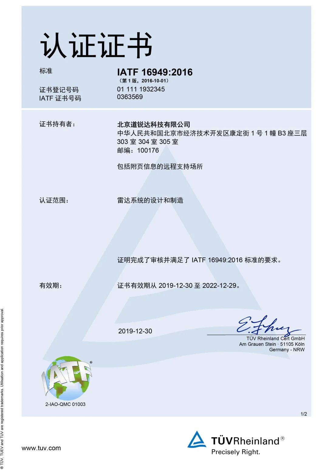 行易道公司先后获得“中关村高新技术企业”、“北京市高新技术企业”和北京市“专精特新”中小企业等资质认定,2020年获得中国雷达协会科技进步二等奖(省部级),并承担了北京市科委“支持高级别自动驾驶的成像毫米波雷达研制”的项目。2021年与中科院空天院共同申请一项新算法的发明专利。