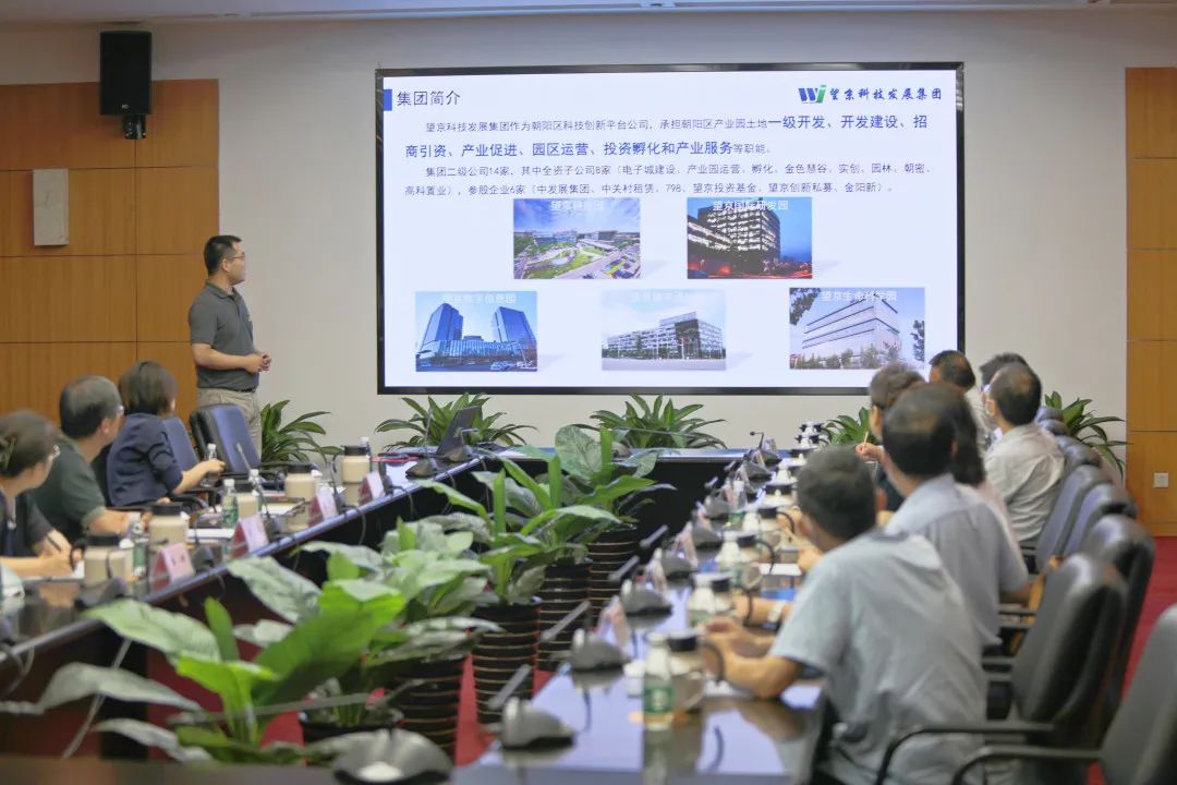 在随后的座谈会中,副总经理王伟就望京综开公司整体情况进行了汇报,详细介绍了望京综开公司的发展历程、产业布局、发展战略、政策环境以及未来规划。他指出,望京综开公司将建立集“科技人才集聚与培养、创业项目培育与孵化、科技成果汇集与转化、产业资源对接与落地、宣传平台搭建与展示”于一体的集团化、专业化、市场化、品牌化、国际化科技产业发展平台。