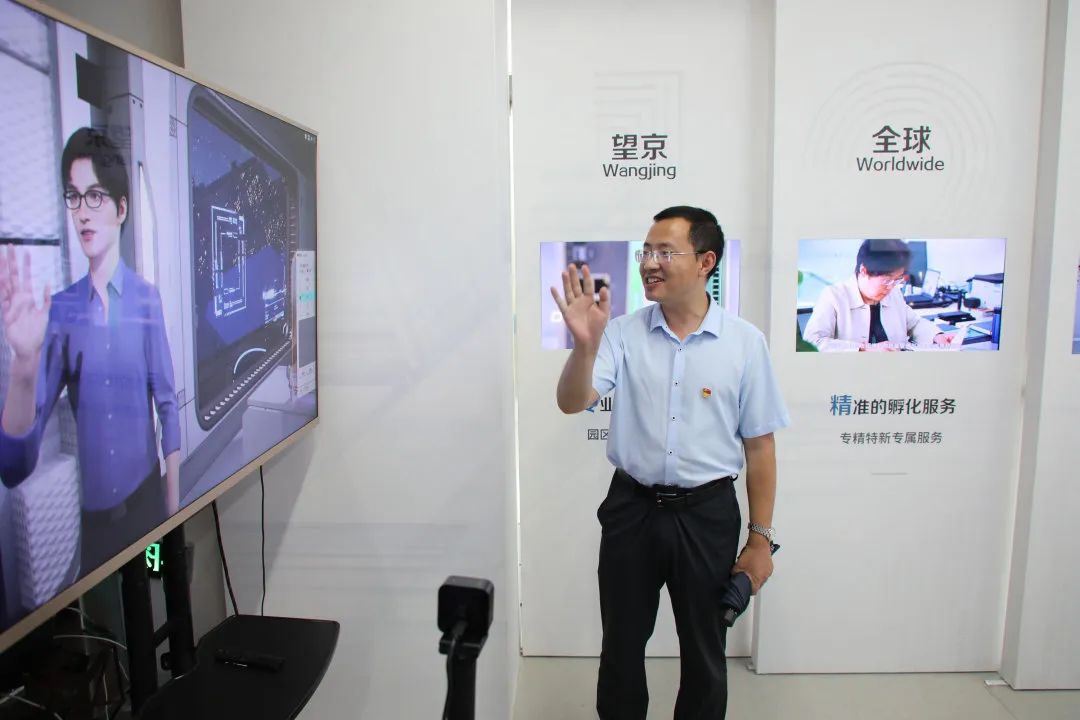 陈岚副局长一行首先来到望京科技园孵化板块望京科技·易蓝空间,听取北京望京科技孵化服务有限公司执行董事、总经理张一讲解易蓝空间的创办理念、空间布局、发展战略以及未来规划愿景,体验数智化展厅、新媒体实验室等数字生态平台,深刻感受了易蓝空间国际化、数字化、专业化的全链条新生态创业服务,并对此给予高度赞扬。
