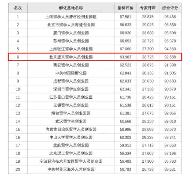 中国北京(望京)留学人员创业园从全国60家孵化基地中脱颖而出,以92.688的综合评分荣获“2022年度中国留学人员创业园区孵化基地综合评价”全国第六名的佳绩。