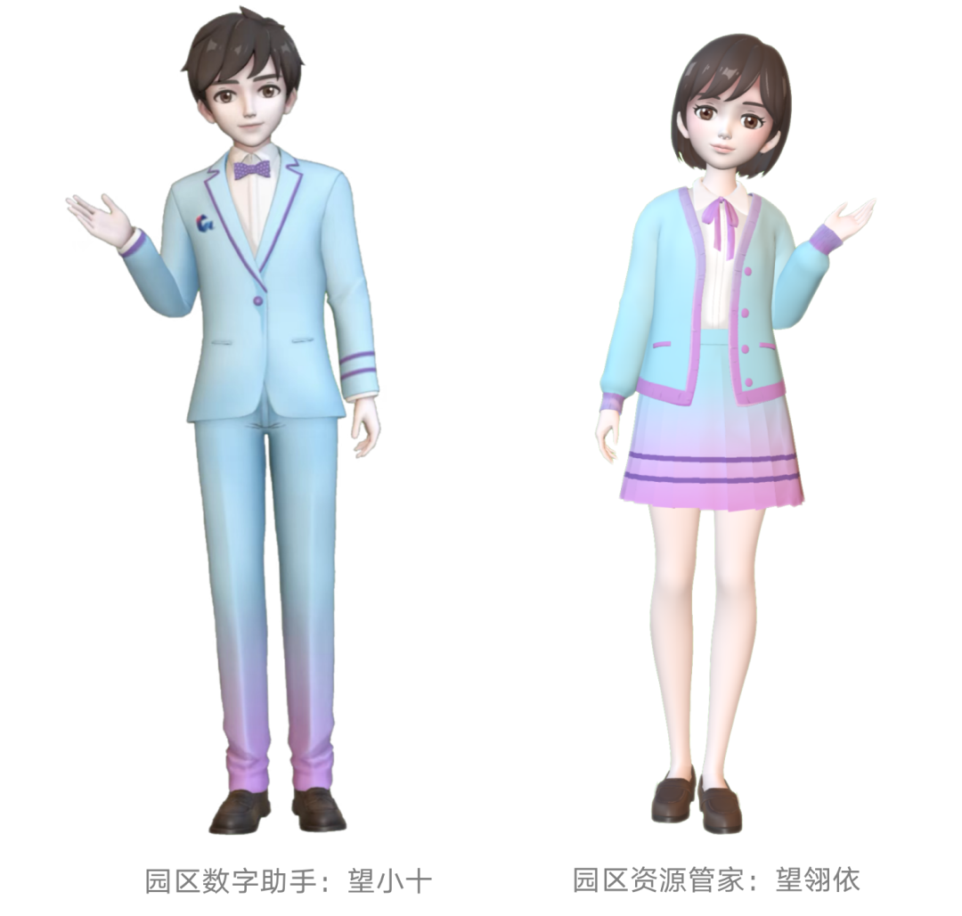 为进一步提升专业数字服务能力,望京留创园采用计算机数字建模技术,利用图形学、图形渲染模拟人物形象,通过动作、面部捕捉等技术模拟真实人物表情神态特征,运用深度学习、语义理解、语音合成等手段全新打造能说、会动、可交互的园区虚拟数字人,推出园区“数字助手”和“资源管家”——望小十、望翎依。