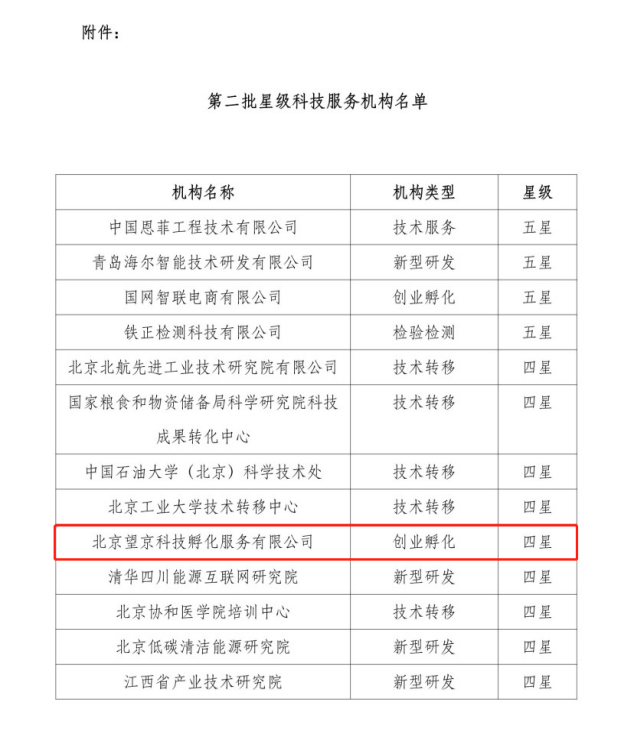 2、2022年12月,望京留创园运营主体——北京望京科技孵化服务有限公司被认定为创业孵化领域全国四星级科技服务机构!