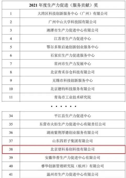 3、2022年8月,望京留创园前置孵化板块——望京科技·易蓝空间荣获“2021年度生产力促进(服务贡献)奖”,再度荣获国家级奖项!