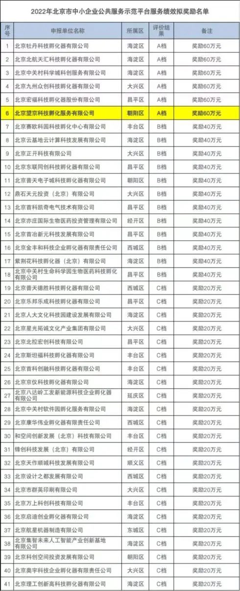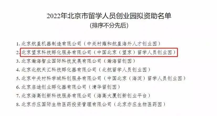5、2022年10月,望京留创园运营主体——北京望京科技孵化服务有限公司被北京市人才工作局纳入“北京市留学人员创业园资助单位”名单,这也是继2021年以来连续第二年成功入选!