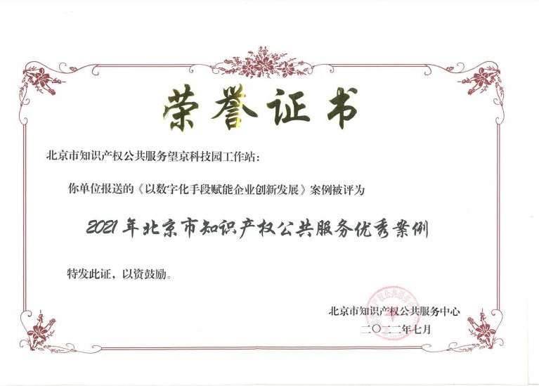 10、2022年8月,望京留创园知识产权工作站在全市63家知识产权工作站评比考核中,排名北京市并列第二,朝阳区第一。继2020年以来,连续两年蝉联朝阳第一,再度荣获“优秀工作站”称号。同时,望京留创园知识产权工作站《以数字化手段赋能企业创新发展》案例被评为“2021年北京市知识产权公共服务优秀案例”。