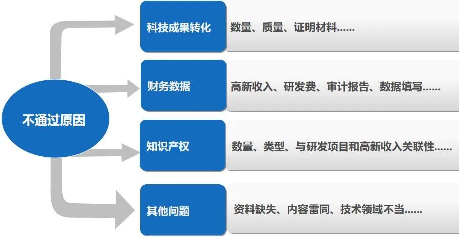 在国家高新技术企业认定过程中,认定评审要求日渐趋严。以北京为例:2021年开始增加事前核查、对审计机构(中介机构)实行准入制,2022年开始审计报告需要统一备案、税务部门介入查申报企业的加计扣除和涉税问题、抽查比例明显提高、通过率明显下降。各地认定管理机构在多年的管理工作中累积了丰富的经验,包括逐渐重视实地核查、对申报资料的真实性和可靠性提出了更高的要求,以及更注重高新技术企业资质的认定条件的内在关联。其中,实地核查或补充材料已成高新技术企业认定管理常态。截止到2022年10月,求臻医学科技(北京)有限公司等226家有效期内国家高新技术企业被取消资格。在材料受理、评审、核查环节中发现部分申报企业在知识产权、财务体系、组织管理、成果转化、成长性等方面准备不足或有所欠缺。部分企业存在对政策和流程不太了解、申报材料不规范等问题。