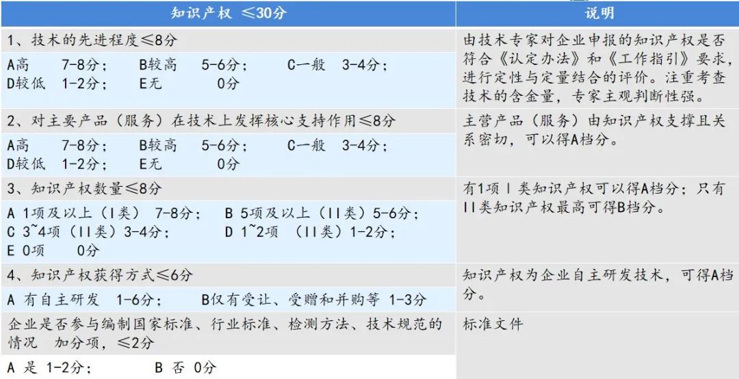 由技术专家对企业申报的知识产权是否符合《认定办法》和《工作指引》要求,进行定性与定量结合的评价。