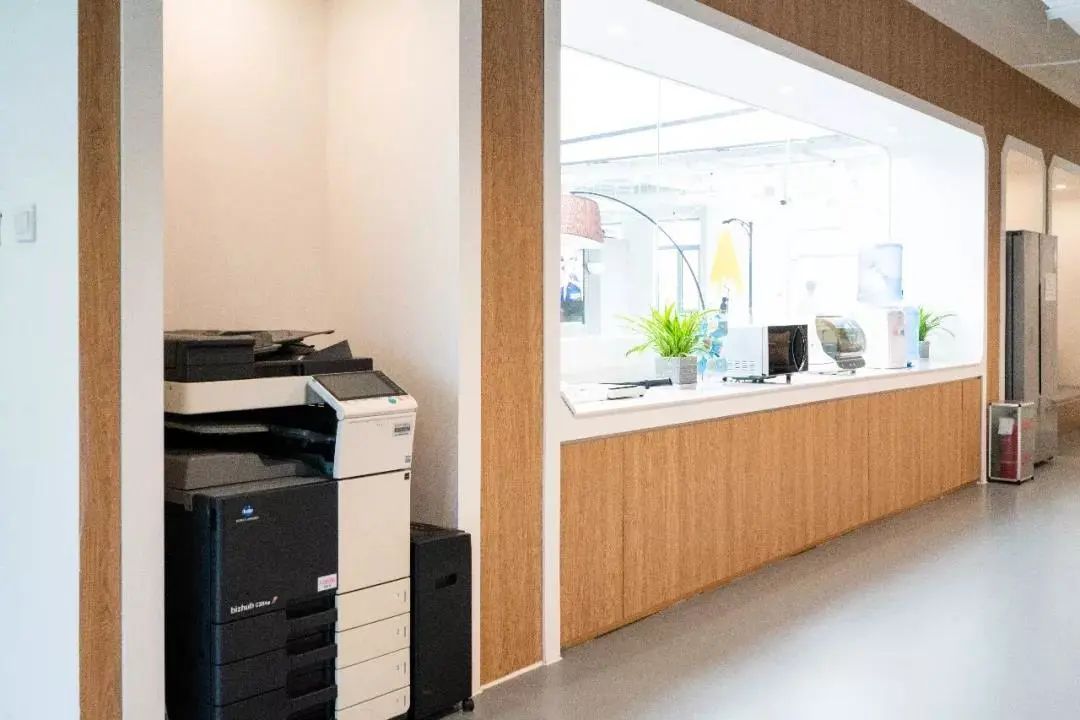 空间内还配有打印机,微波炉,直饮水机等共享设备。