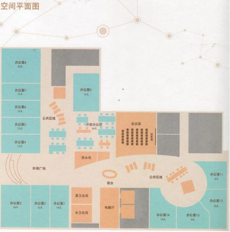 (望京科技·易蓝空间平面图)易蓝空间共计1900平米共有188个工位