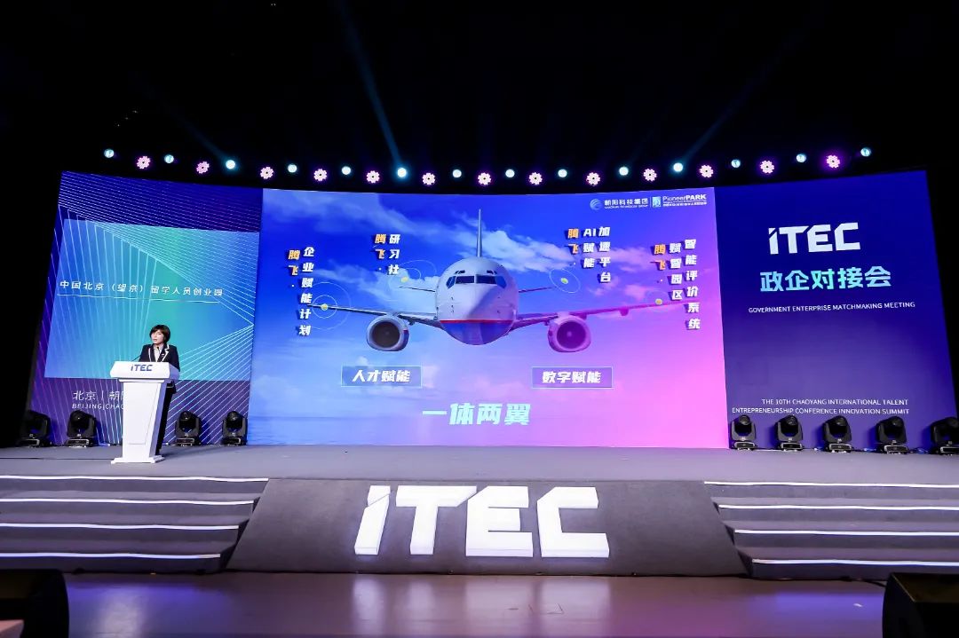 在政企对接会环节,望京留创园执行董事、总经理张一发表了主题宣讲,从产业生态、特色孵化服务模式及落地政策,为ITEC获奖企业展现了数智化科创服务的魅力。