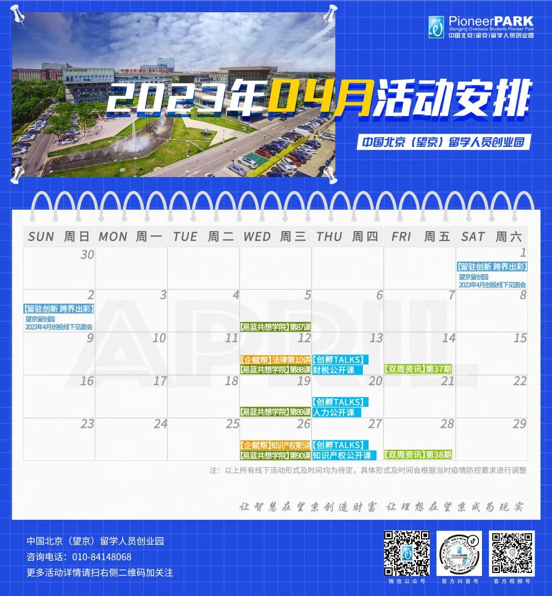 望京留创园活动日历也如期而至