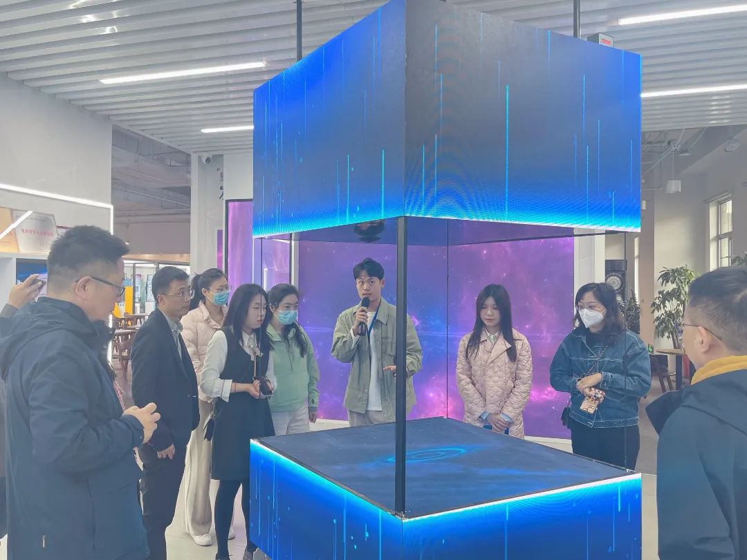 随后,在工作人员的演示下,来访成员一行沉浸式体验了园区大数据屏、3D全息风扇屏、园区专属虚拟数字人组合、望京留创园数智展厅、新媒体实验室等园区数字生态平台,了解了望京留创园的数字化运营体系,深刻感受了望京留创园国际化、数字化、专业化的科创服务,并对此给予高度赞扬。
