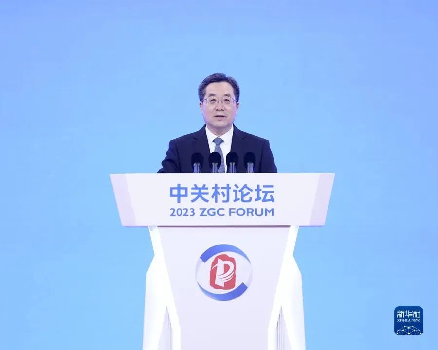 5月25日晚,2023中关村论坛在北京开幕。中共中央政治局常委、国务院副总理丁薛祥出席开幕式并致辞。新华社记者 刘彬 摄