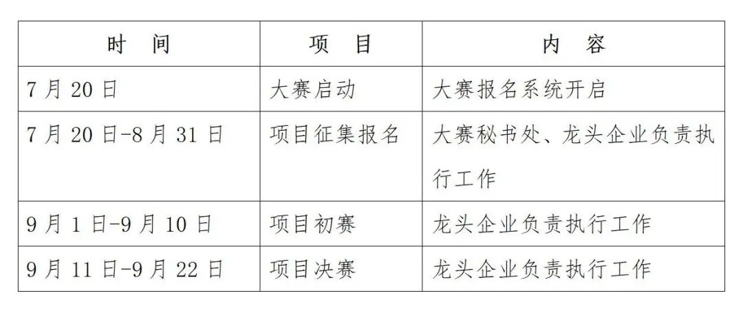 4.龙头企业专项赛具体时间安排如下(各别赛事安排有差异,以各赛道通知为准):