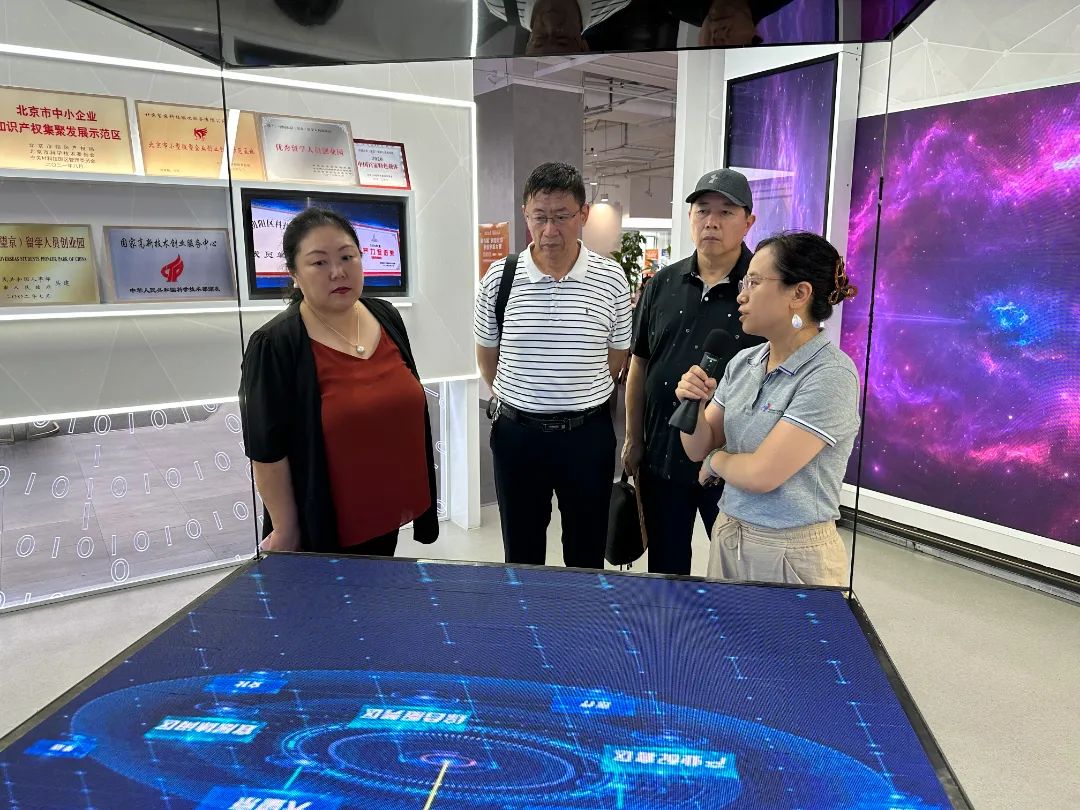 首都科技服务业协会领导一行首先参观了望京科技园前置孵化板块望京科技·易蓝空间,了解了易蓝空间的创办理念、空间布局、发展战略以及未来规划,体验了望京留创园大数据屏、专精特新GIS地图、3D全息风扇屏、园区专属虚拟数字人组合、望京留创园数智展厅、腾飞·AI赋能加速平台、新媒体实验室等园区数字生态平台,深刻感受了园区国际化、数字化、专业化的科创服务,并对此给予了高度赞扬。