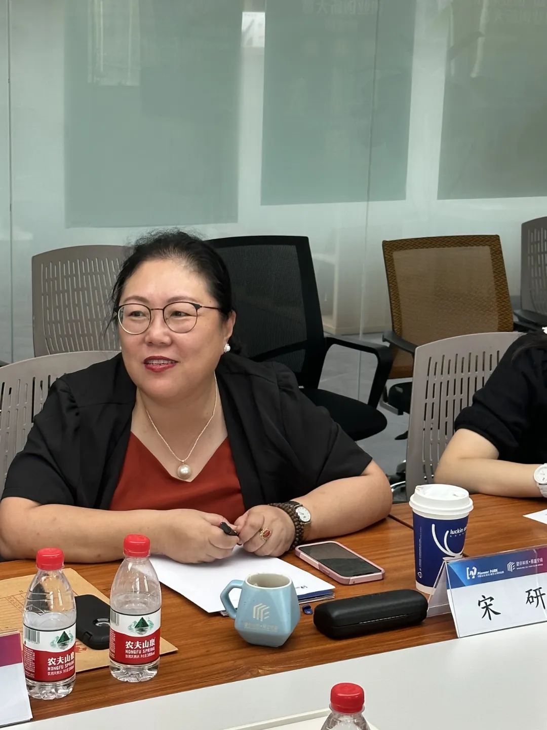 在随后的座谈中,望京留创园执行董事、总经理张一对谌季理事长一行的到访表示热烈欢迎。张一就园区整体发展情况进行了详细介绍,并重点讲解了园区在数字经济领域开展的工作。望京留创园是朝阳科技集团旗下专注于科技创新服务的子品牌。作为全国首批国家级科技企业孵化器、北京市首家且朝阳区唯一一家省部共建留创园,园区坚持以实现国际化、数字化的全链条新生态创业服务为引领,以人才赋能、数字赋能为驱动,构建“一体两翼四大引擎”的特色创新孵化服务体系,以“无边界”孵化理念,打造四大“腾飞”系列核心服务产品,推动园区数字生态环境建设,赋能企业成长、促进园企共生。