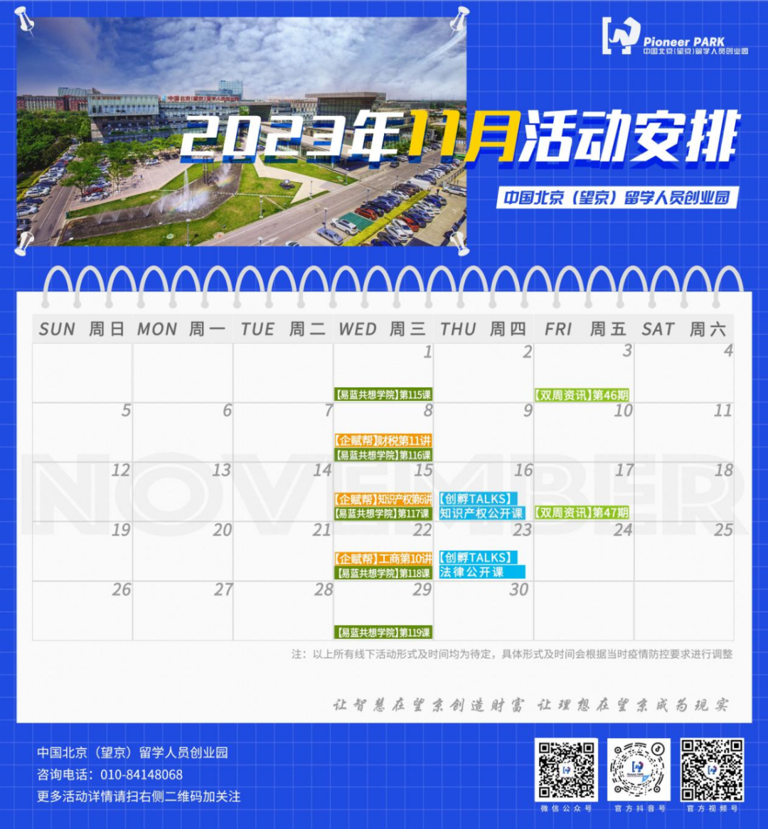 望京留创园11月活动日历