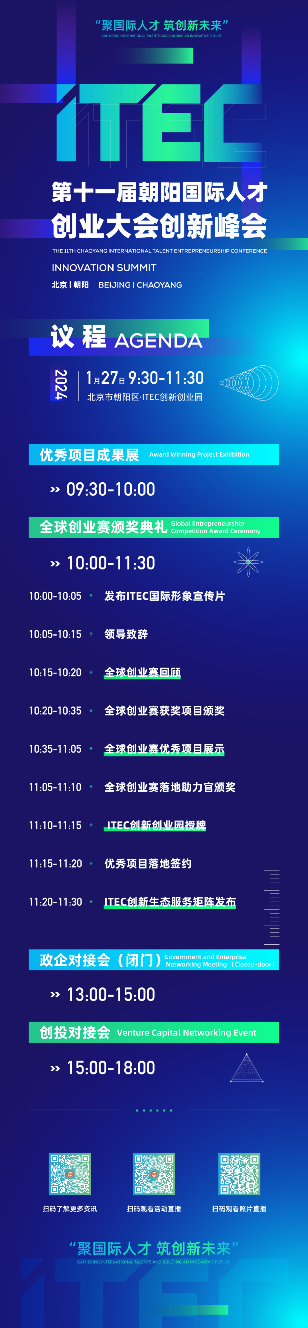1月27日(本周六)上午9:30,朝阳凤凰之家视频号等多个直播平台将对本届峰会进行全程直播,欢迎扫描下方“峰会议程”二维码观看!