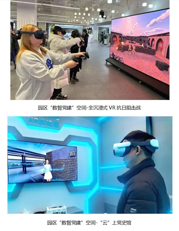 在党建空间方面,自2020年以来,园区已经构建起一个较为完善的“数智党建”空间,包含:大数据屏、专精特新GIS地图、3D全息风扇屏、虚拟党建数字人组合、园区数智展厅、腾飞·AI赋能加速平台、新媒体实验室等园区数字生态平台。2023年最新落成的XR实验室和LED大屏,植入AI+XR元宇宙智慧党建思政系统,包含互动沙盘展馆、虚拟阅读展馆、互动体验展馆、数据展示屏幕等版块,全面升级园区“数智党建”空间。
