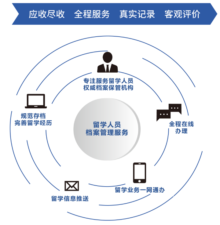 教育部留学服务中心留学人员档案管理处致力于引导留学人员规范存档并归档留学经历,结合“互联网+留学服务”新模式,全程在线办理,为留学人员提供便捷高效的档案管理服务。