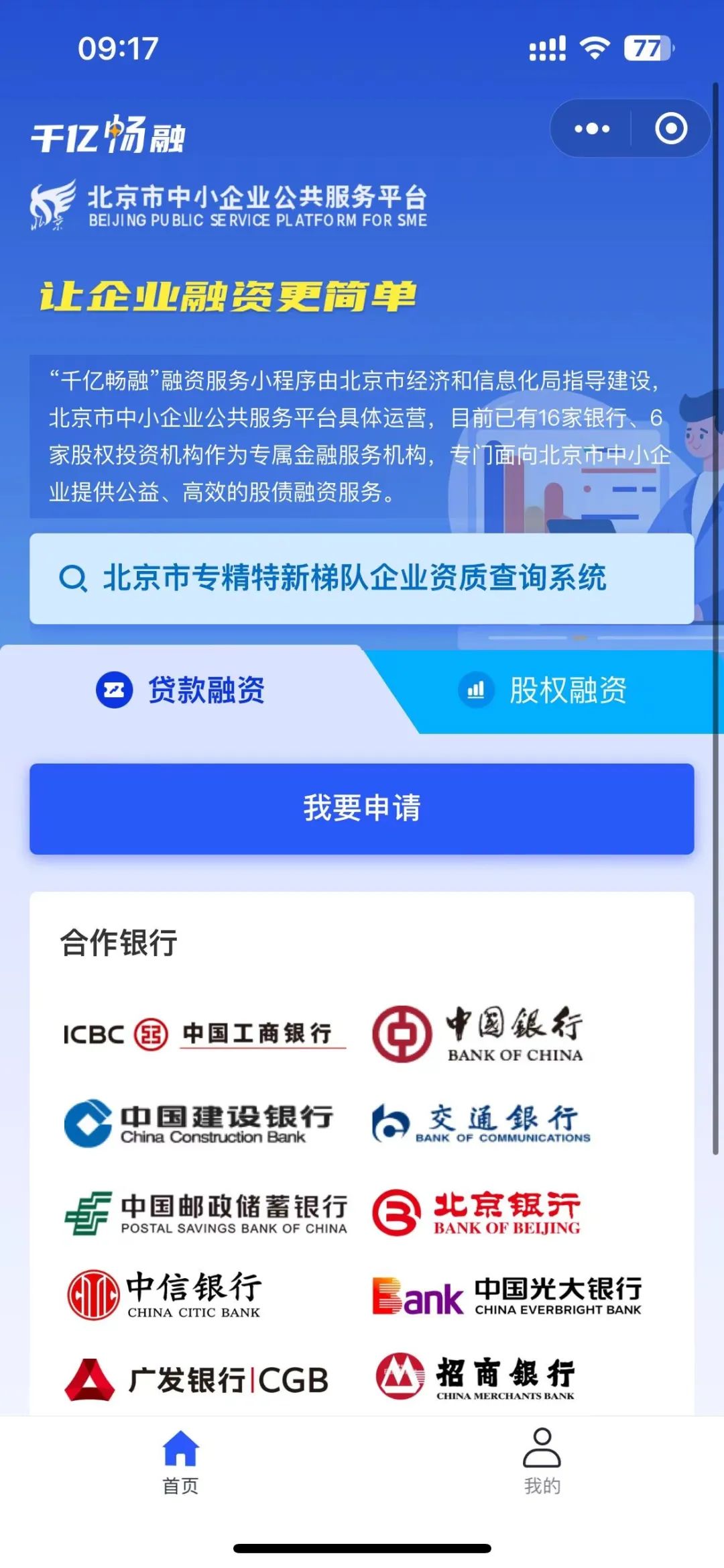 “千亿畅融”小程序是为贯彻落实《北京市促进中小企业发展条例》《关于实施十大强企行动激发专精特新企业活力的若干措施》,由北京市经济和信息化局主导建设,北京市中小企业公共服务平台负责运营的企业融资服务平台。平台汇聚了北京市16家分行、9家投资机构和一批FA机构,旨在为北京市中小企业、专精特新梯队企业搭建便捷、高效的融资对接渠道,提升融资服务质效,助力企业高质量发展。