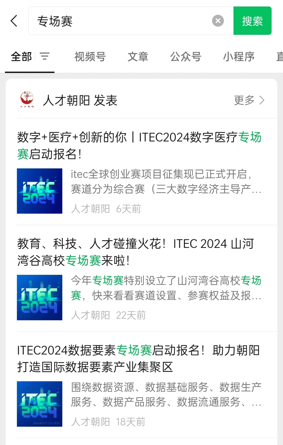 有关专场赛的详细介绍,欢迎关注“人才朝阳”公众号,搜索“专场赛”即可了解。