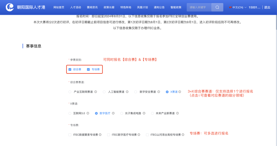 ITEC大赛综合赛围绕朝阳区3+X产业赛道设置,具体包括3大数字经济主导产业赛道(产业互联网、人工智能、数字安全)+X数字经济未来产业赛道(互联网3.0、数字医疗、光子集成电路、未来产业新赛道),报名系统中有每个赛道的具体说明,您可以根据项目情况选择最贴近的赛道。