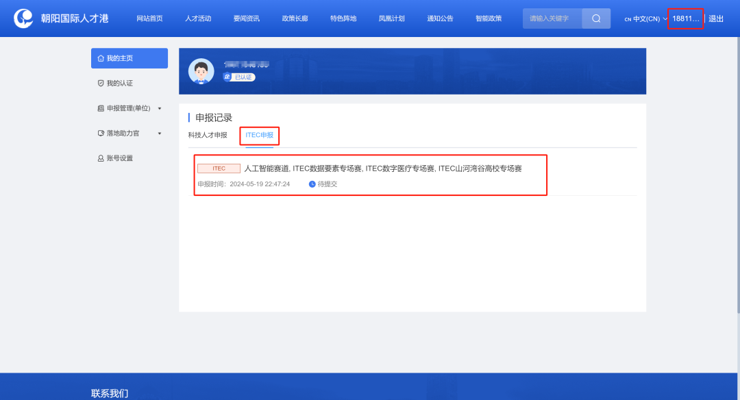 您可以点击网站右上角个人账号,进入个人中心,在【我的主页】-【申报记录】-【ITEC申报】查看或修改报名表。