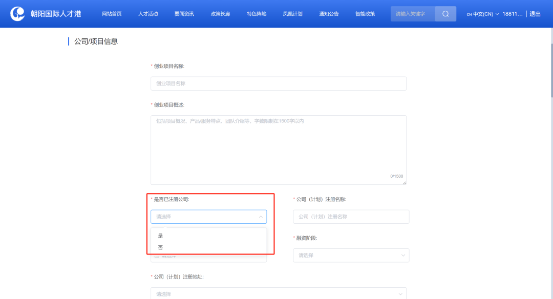 i. “是否已注册公司”字段选择【否】