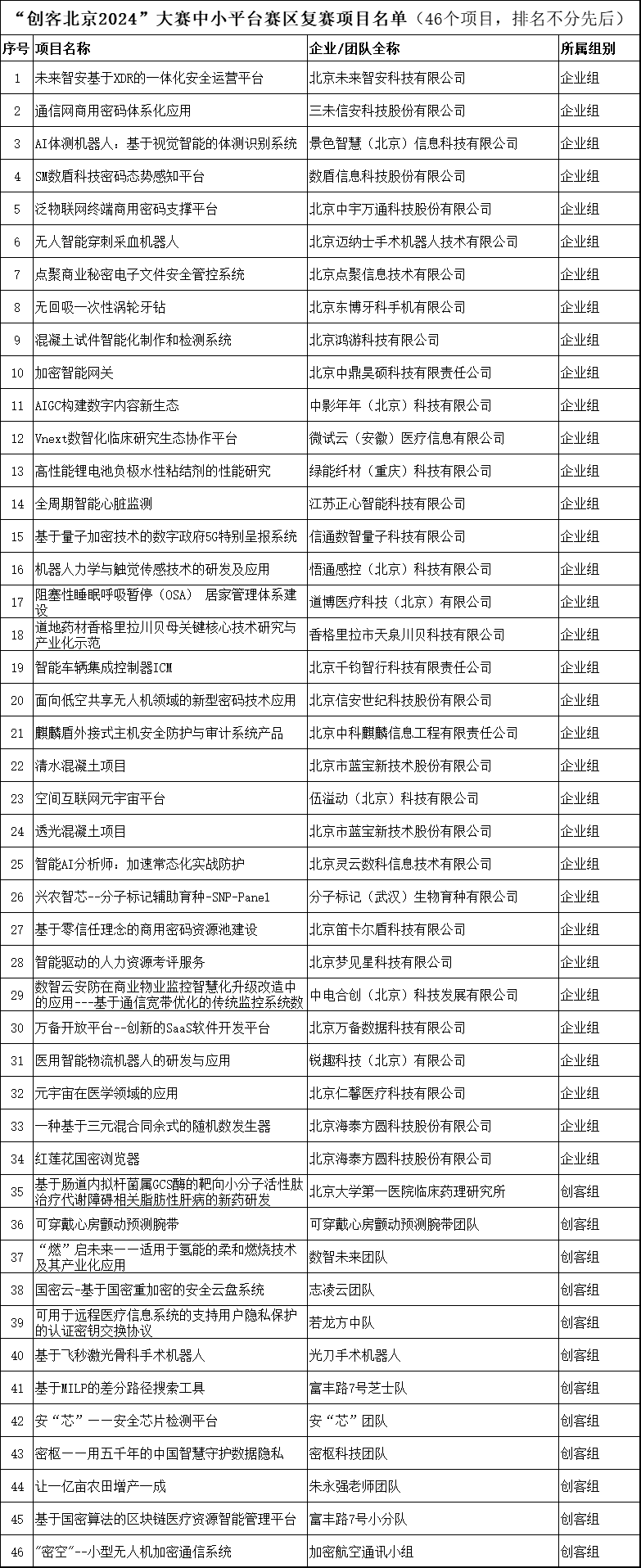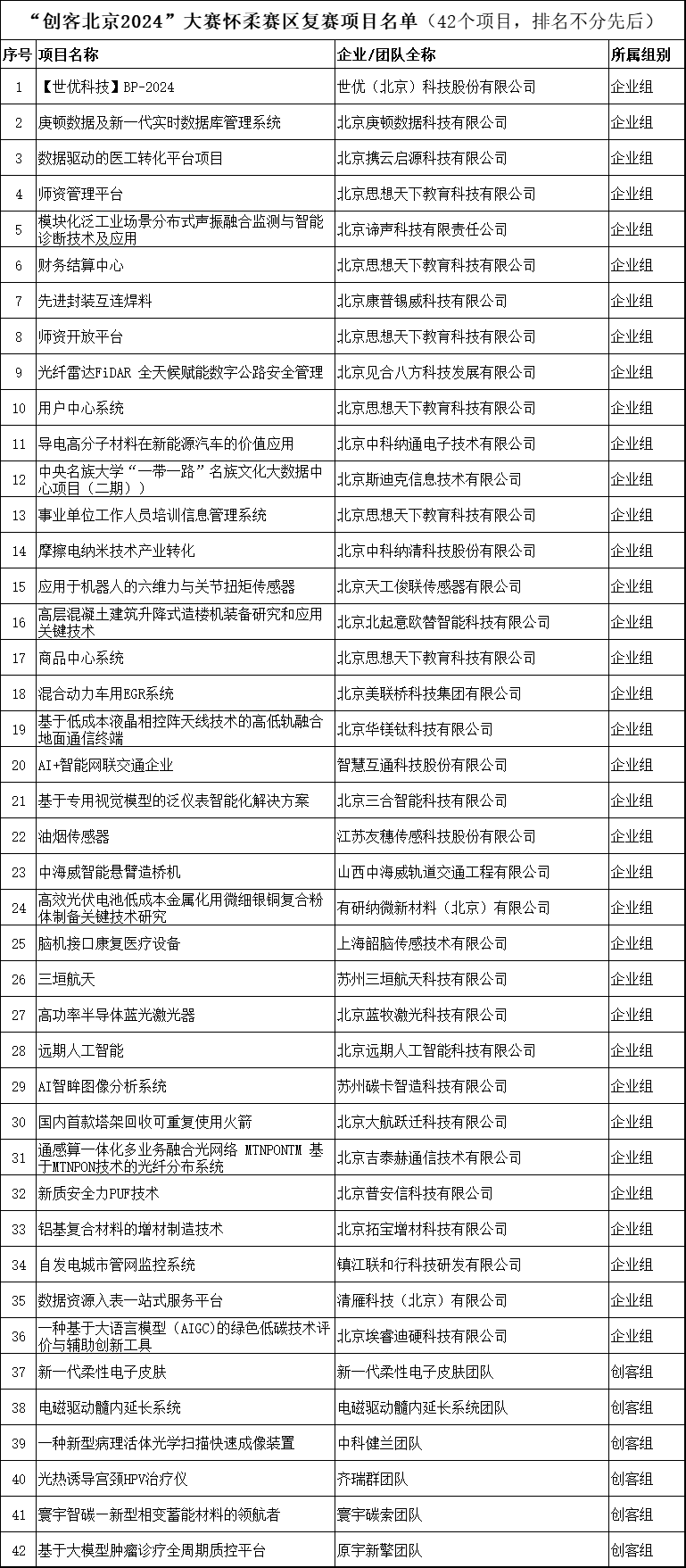 第九届“创客中国”北京市中小企业创新创业大赛暨“创客北京2024”创新创业大赛各赛区初赛已全部结束,现将北京区域赛入围复赛的第二批项目名单公布如下,后续比赛资讯请继续关注北京市中小企业公共服务平台网站、微信公众号和北京通企服版APP。
