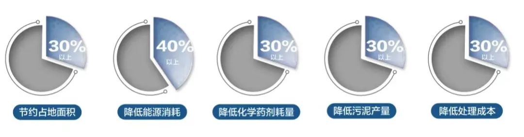 04降低污泥产量30%以上微生物生长缓慢、污泥龄长,边进边出沉淀池使得污泥压缩比好,排出的污泥含固率较高,减轻后续污泥处理负担。