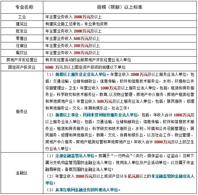 认清各行业规模(限额)标准