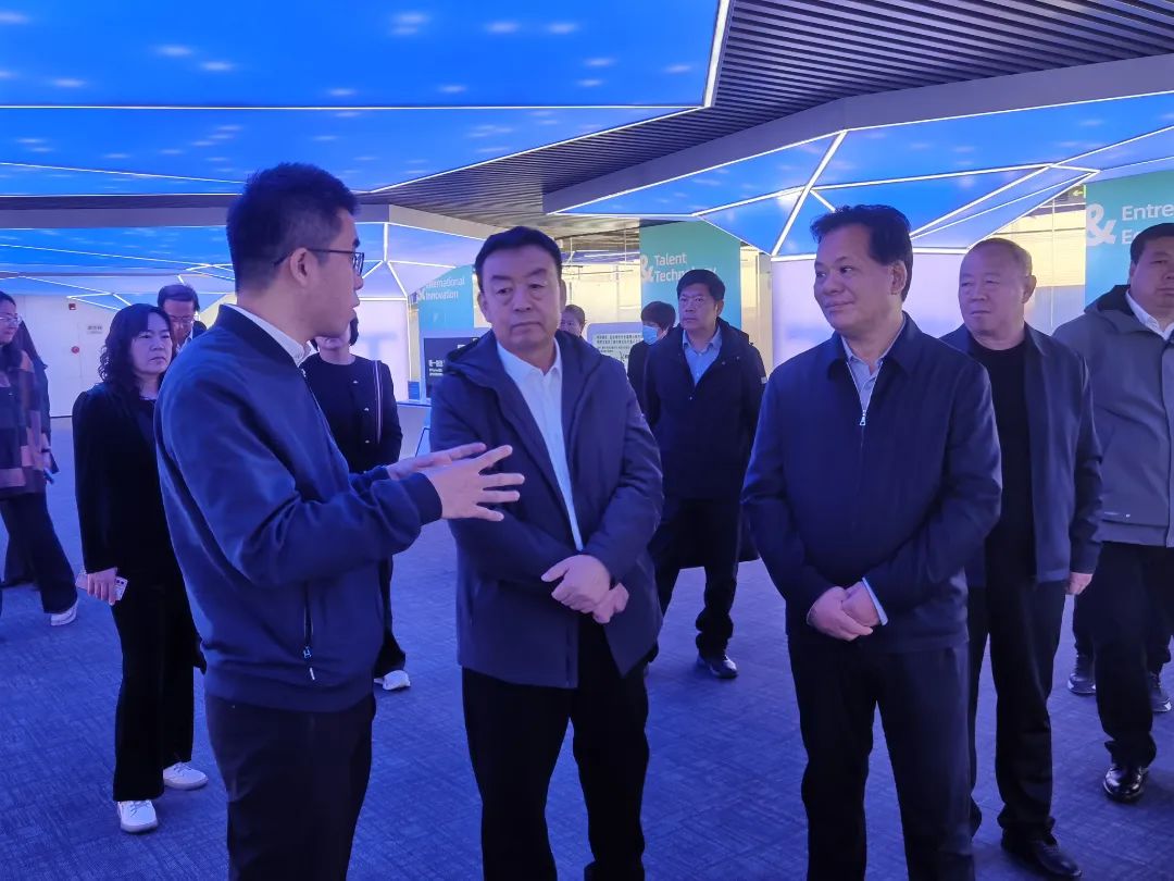 宋照日格图主任一行深入参观了ITEC创新创业园创新中心。在“时光隧道”多媒体展区了解ITEC的发展历程和创新成果,在“数智森林”企业空间参观ITEC历届获奖企业的项目展示。