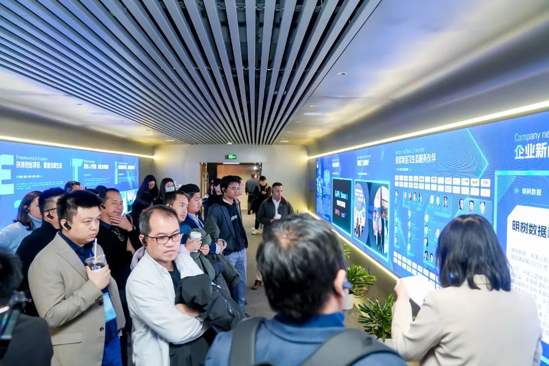 随后,代表团深入探访了ITEC创新创业园创新中心,在“时光隧道”多媒体展区了解ITEC的发展历程和创新成果,在“数智森林”企业空间参观历届获奖的项目展示,体会了ITEC创新创业园科技、时尚、温馨的设计思路与服务理念。