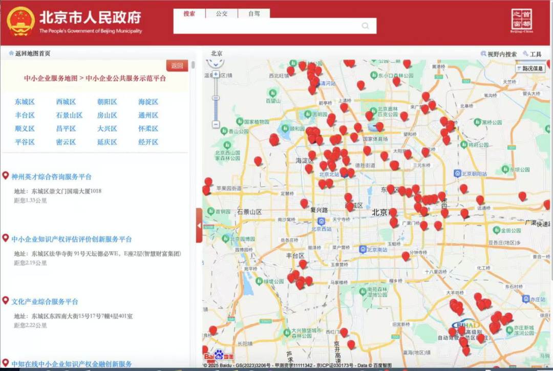 (北京市中小企业服务地图上线)