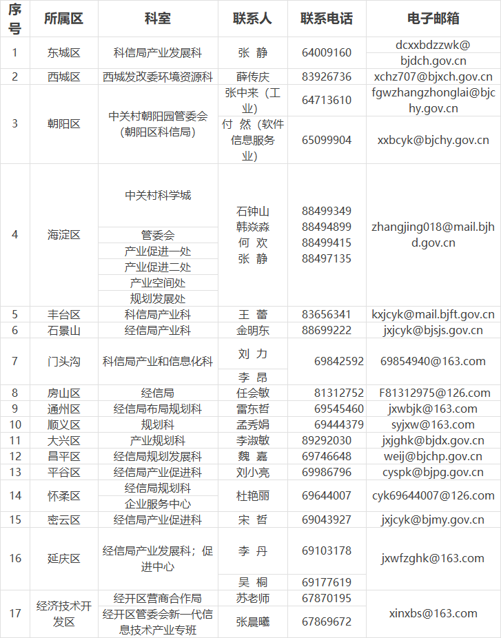 3.各区联系方式详见下表: