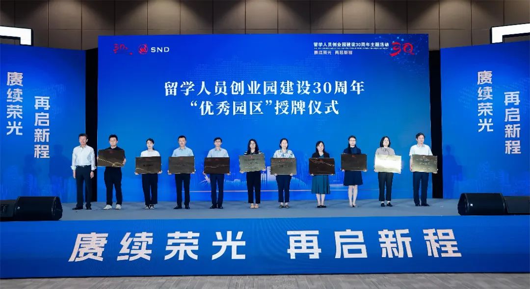 活动现场举行了留学人员创业园建设30周年系列荣誉表彰仪式,望京留创园作为孵化绩效优异、示范效果突出的30家优秀留学人员创业园之一,荣获“优秀园区”嘉奖。