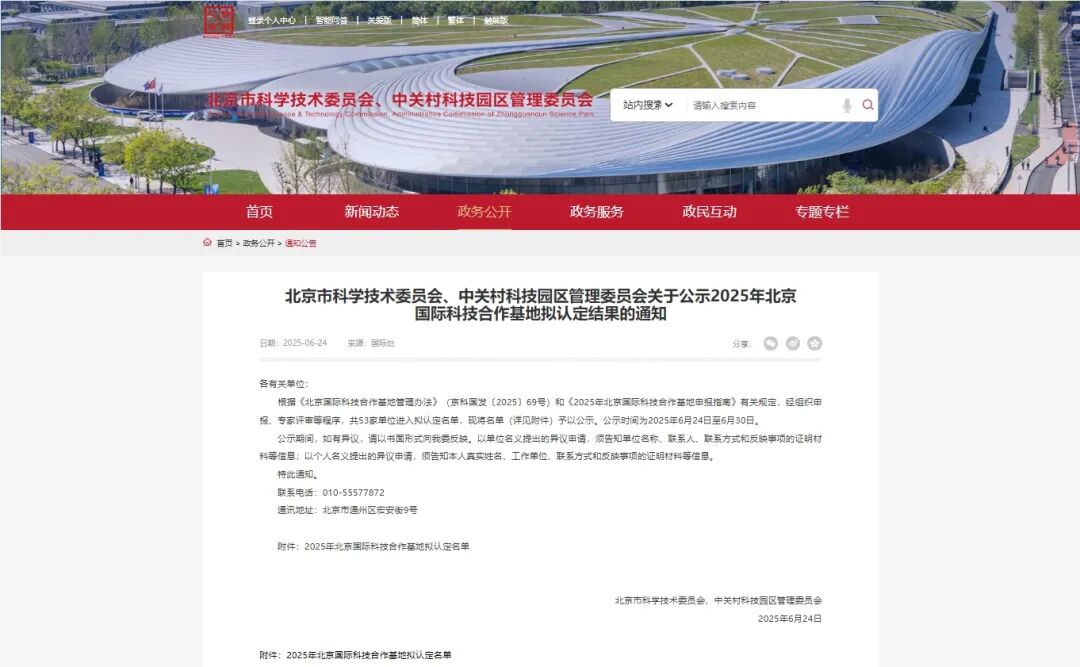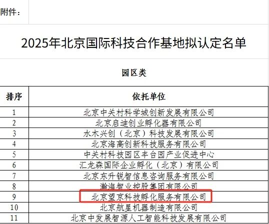 近日,北京市科学技术委员会、中关村科技园区管理委员会公示2025年首批“北京国际科技合作基地”名单,中国北京(望京)留学人员创业园(依托单位:北京望京科技孵化服务有限公司)凭借其在国际资源链接、跨域合作搭建、全球创新服务等领域的突出成果,成功入选“2025年北京国际科技合作基地(园区类),成为北京市数字经济国际化合作的标杆力量。