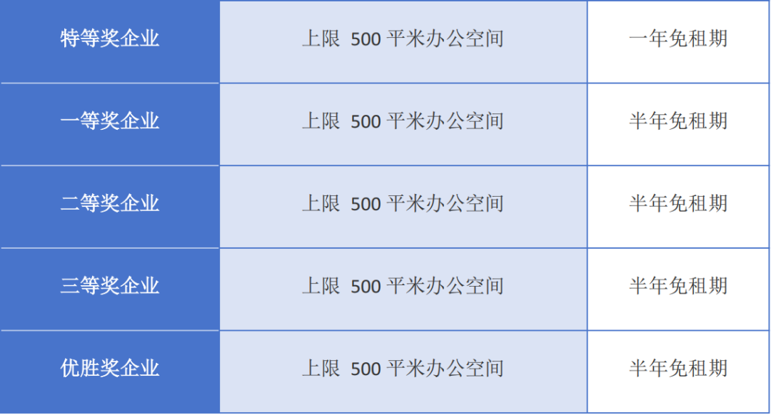 为通过遴选的ITEC获奖企业提供免费办公空间,按照特等奖不超过500平方米、一等奖不超过400平方米、二等奖不超过300平方米、三等奖不超过200平方米、优胜奖不超过100平方米,为获奖项目提供连续三年、不同梯次标准的空间服务。
