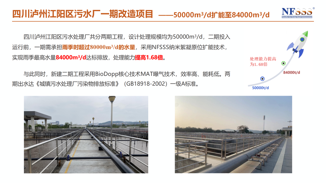 NFSSS(NanoFloc for Sludge Rapid Sedimentation)纳米絮凝原位扩能技术,是博泰至淳与清华大学环境学院针对污水处理厂雨季超负荷问题研发的创新解决方案。其核心在于: