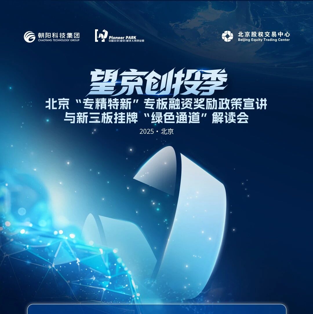 诚邀参加!7月23日,望京留创园将举办北京“专精特新”专板融资奖励政策宣讲与新三板挂牌“绿色通道”解读会,最高奖励达30万元!作为望京创投季的重磅活动,本次解读会将携手北京股权交易中心、朝阳园管委会(区科信局) ...